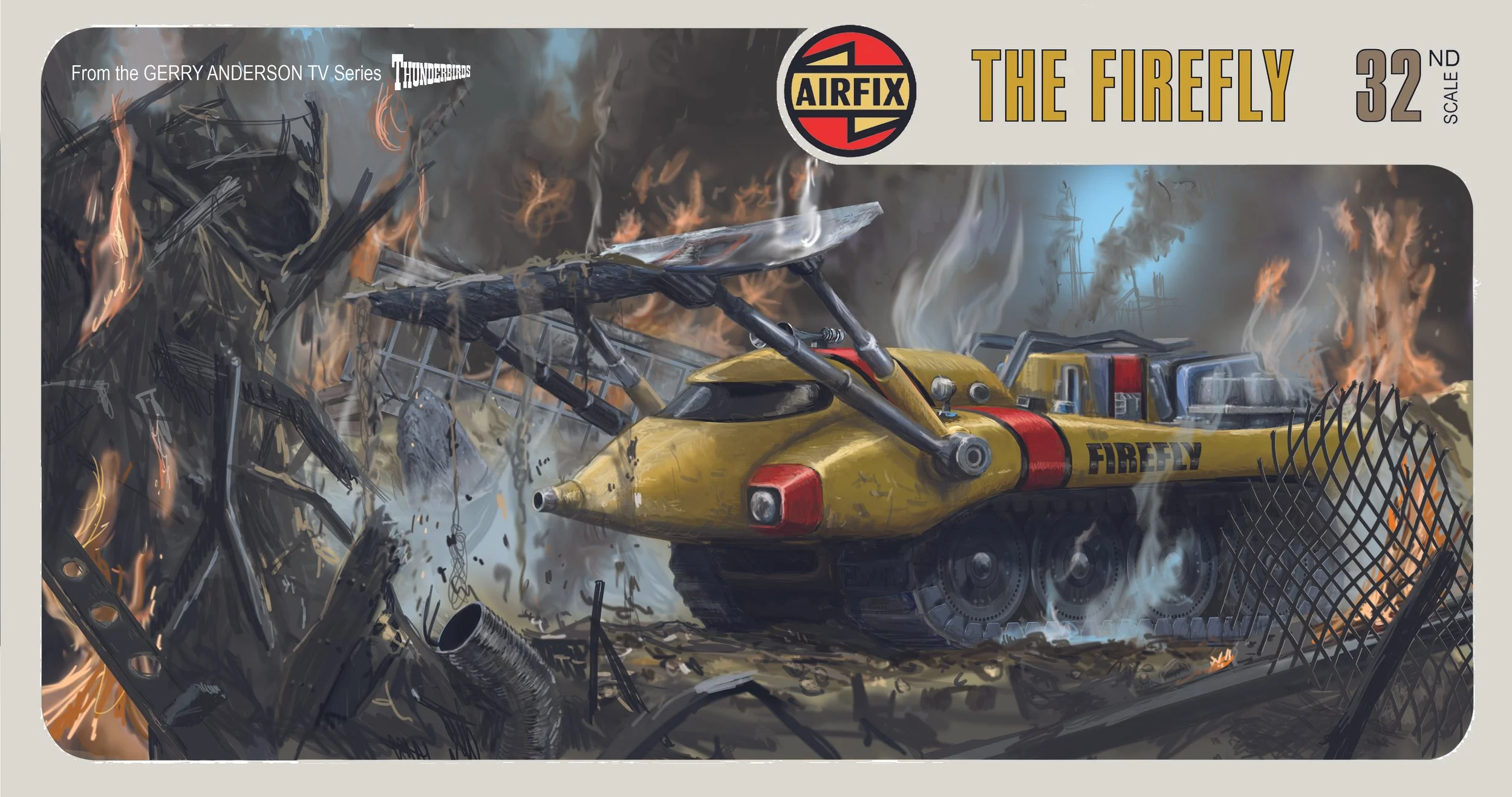 The FIREFLY is International Rescue’s front line vehicle for dealing with large fires. The dozer-like blade is highly heat resistant. The vehicle has a powerful cannon that is used to demolish rubble and extinguish fires. The vehic;e is extremely powerful and robust. The Firefly is featured extensively in ‘City of Fire’, and the ‘Cry Wolf’ hangar scene and during the rescue at the start of ‘Terror in New York City’.
