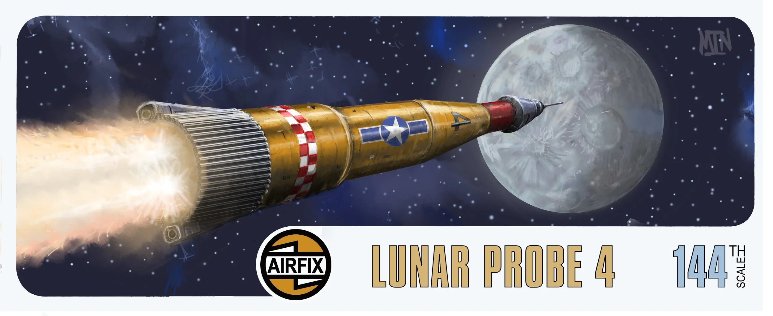 This is the rocket featured in the painting in the Tracy Lounge. The painting that Virgil uses to access Thunderbird 2. In the context of the show, Jeff Tracy was an astronaut and one of the first men on the moon. It is suggested in ‘Trapped in the Sky’ that this painting is Jeff’s moon mission, or one of his moon missions. Other rockets featured in the series are called ‘Sunprobe’ and the ‘Martian Space Probe’. There is a ‘4’ on the side, so it seems logical this would be called Lunar Probe 4.
