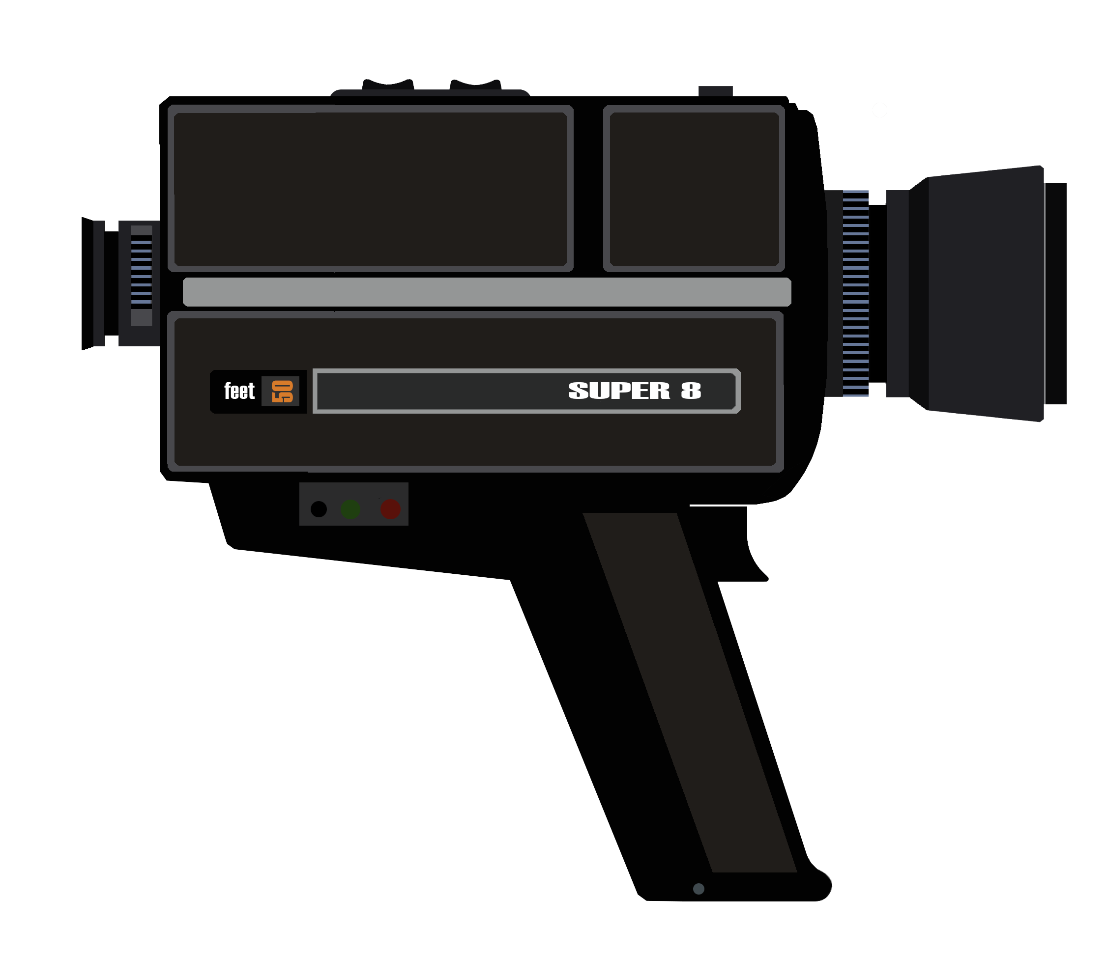 This graphic represents the family Super 8 'Home Movie' camera from the mid 1970s.