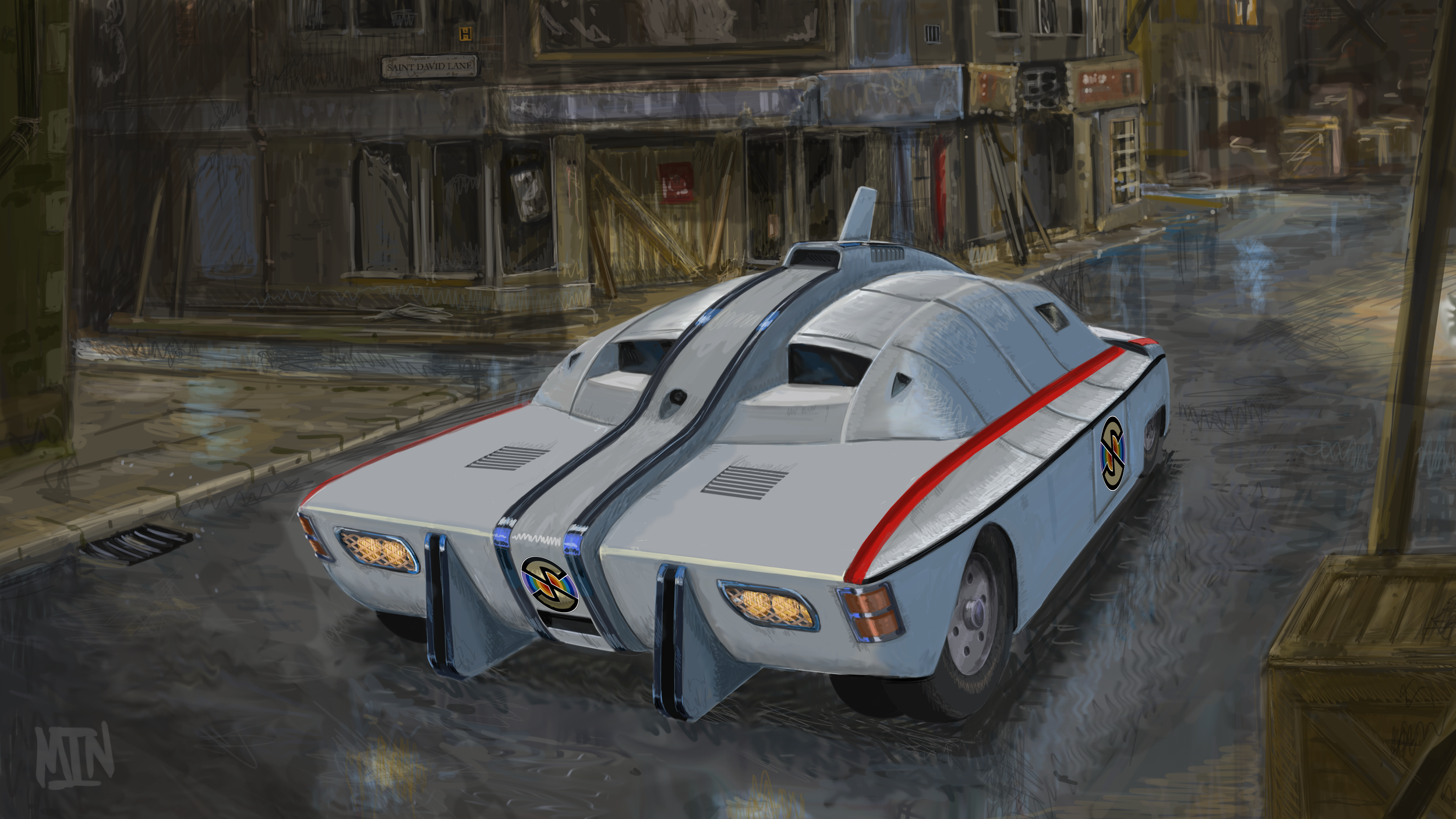 The Spectrum Maximum Security Vehicle is a well armoured and resilient vehicle used for transporting and protecting precious cargoes or vital personnel. This painting imagines the vehicle in the seedy back alleys reminiscent of the show’s atmospheric opening title sequence..