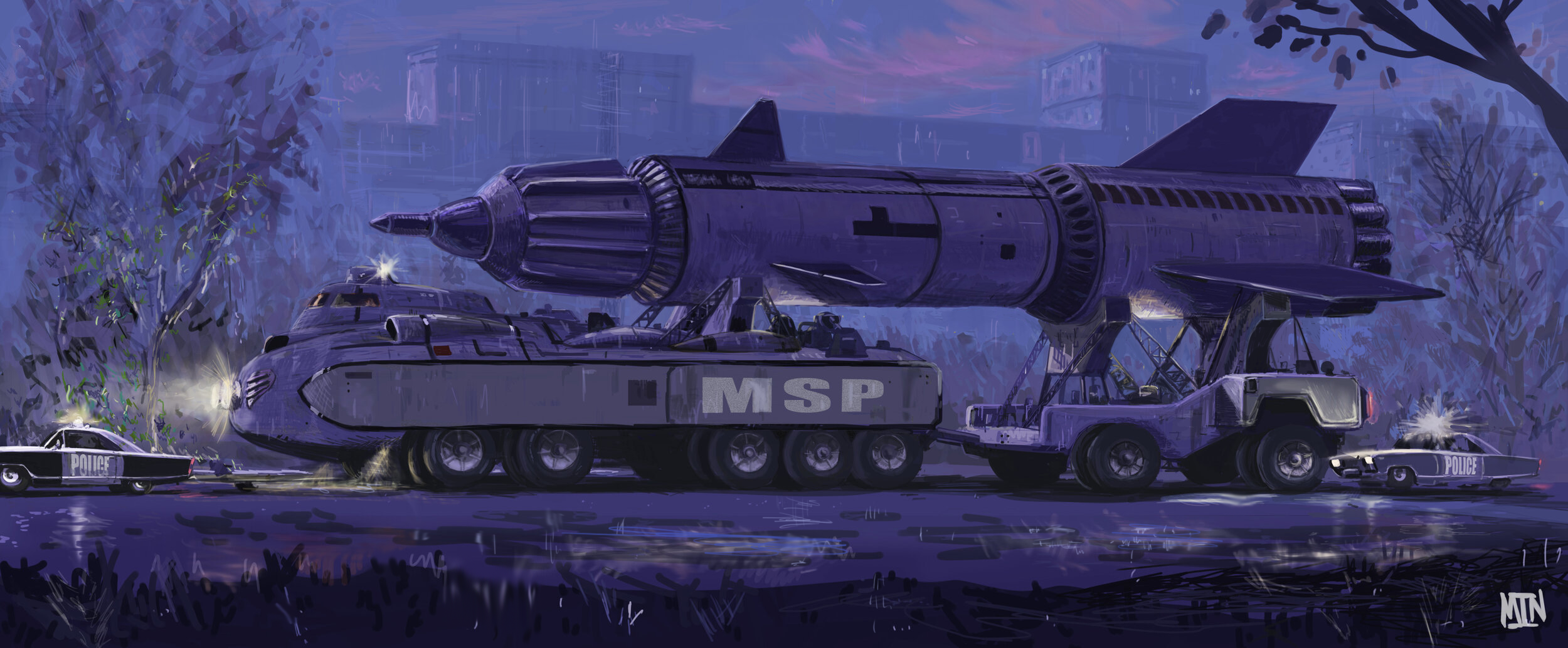 The Martian Space Probe rocket atop its giant transporter featured in the episode ‘Day of Disaster’. This imaginary scene is set in the early morning, prior to the events seen in the show.