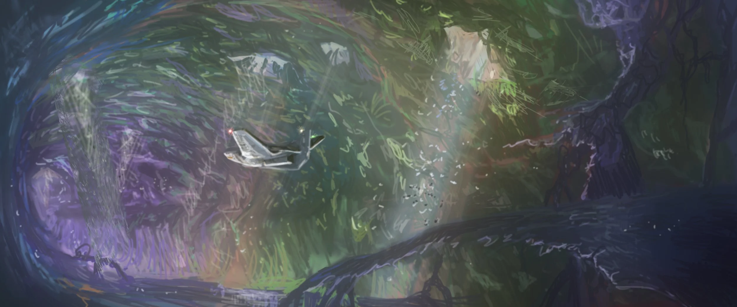 A design sketch for one of the subterrean areas. As we go deeper into teh Erath the environemnts will change - insputed by different layers of rock and geological materials.