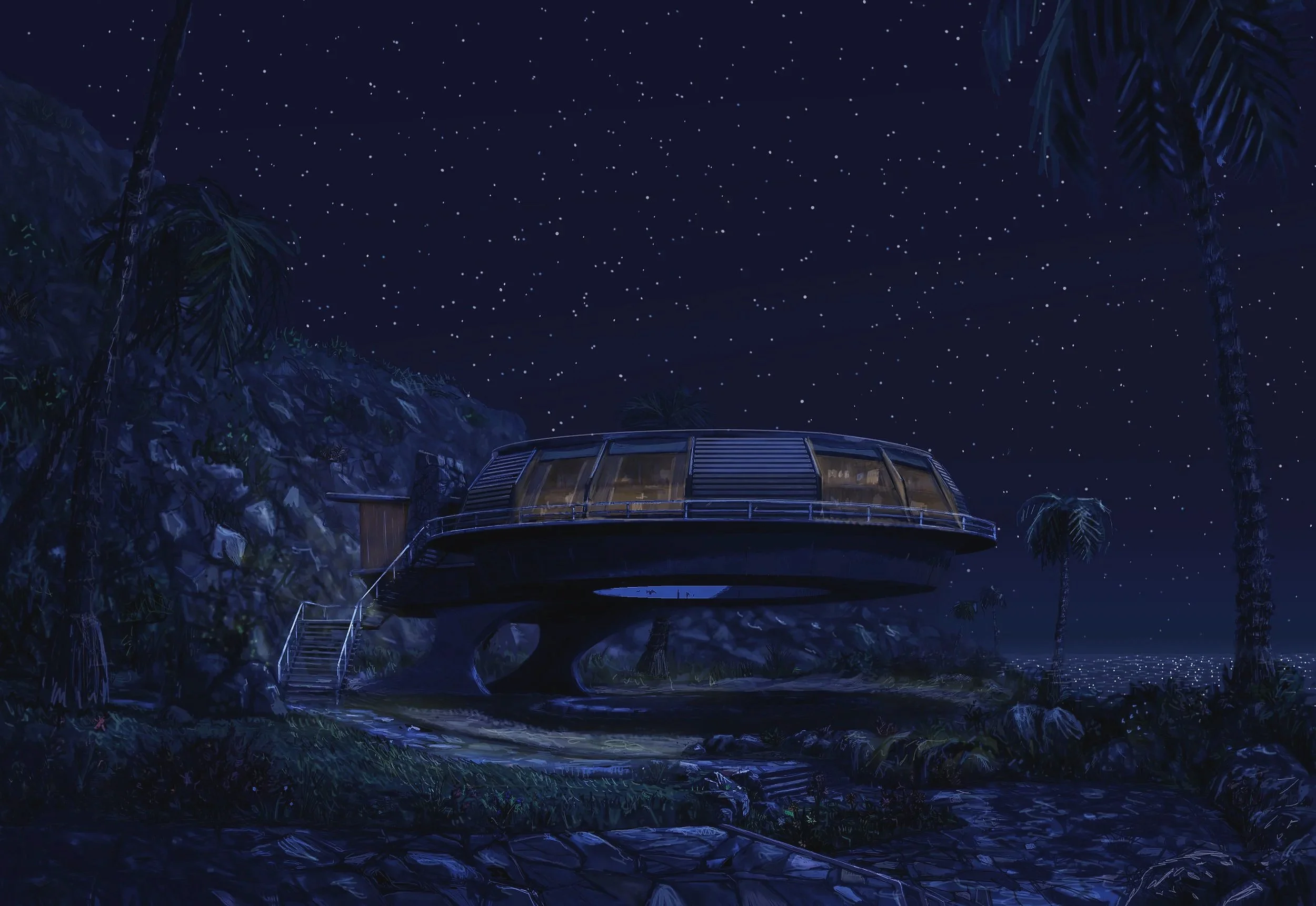 THE ROUND HOUSE at night from ‘Thunderbirds’ (1965) created by GERRY ANDERSON